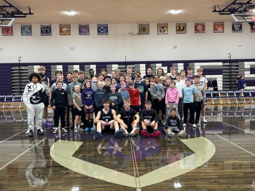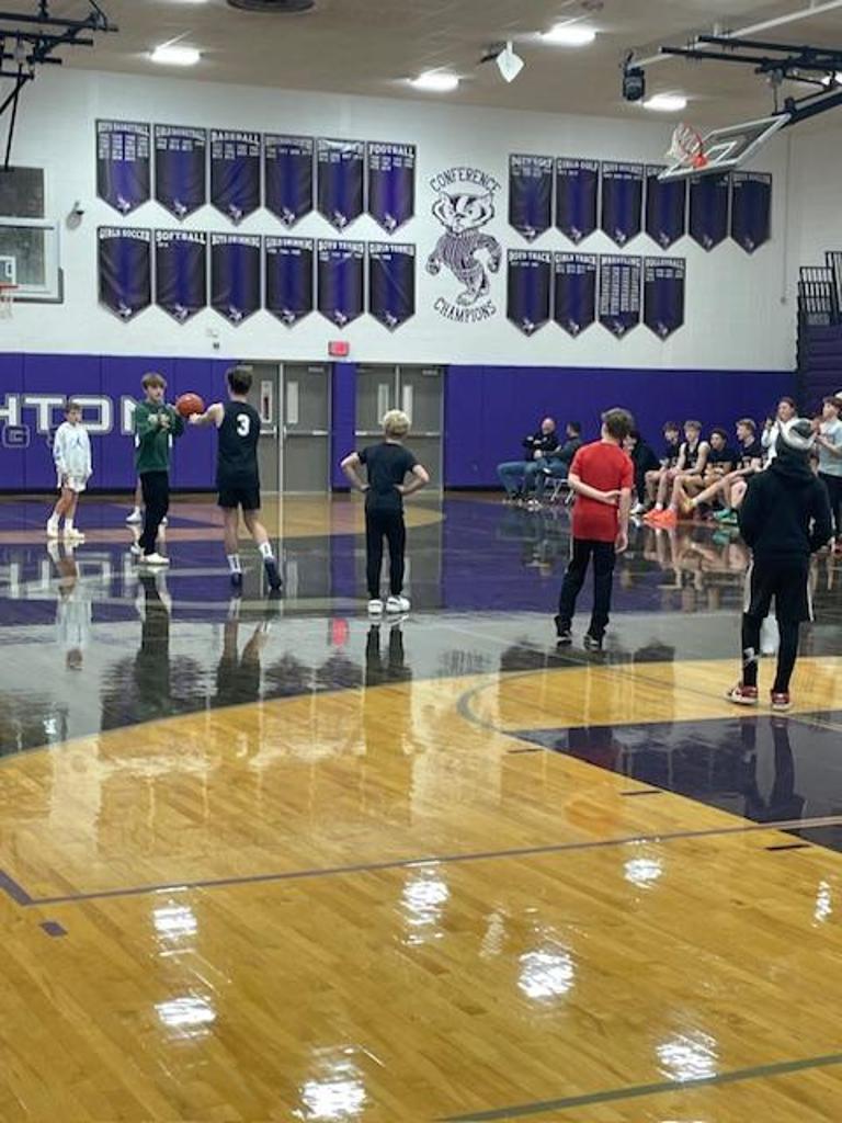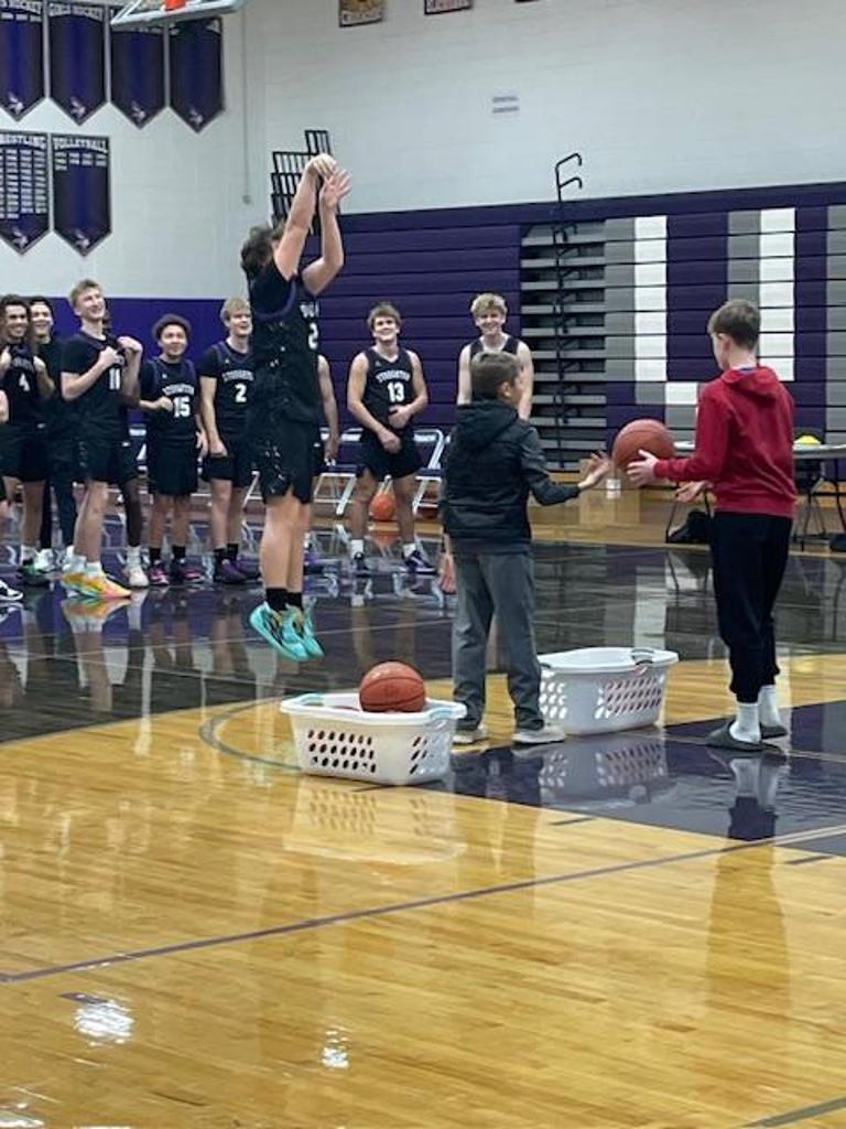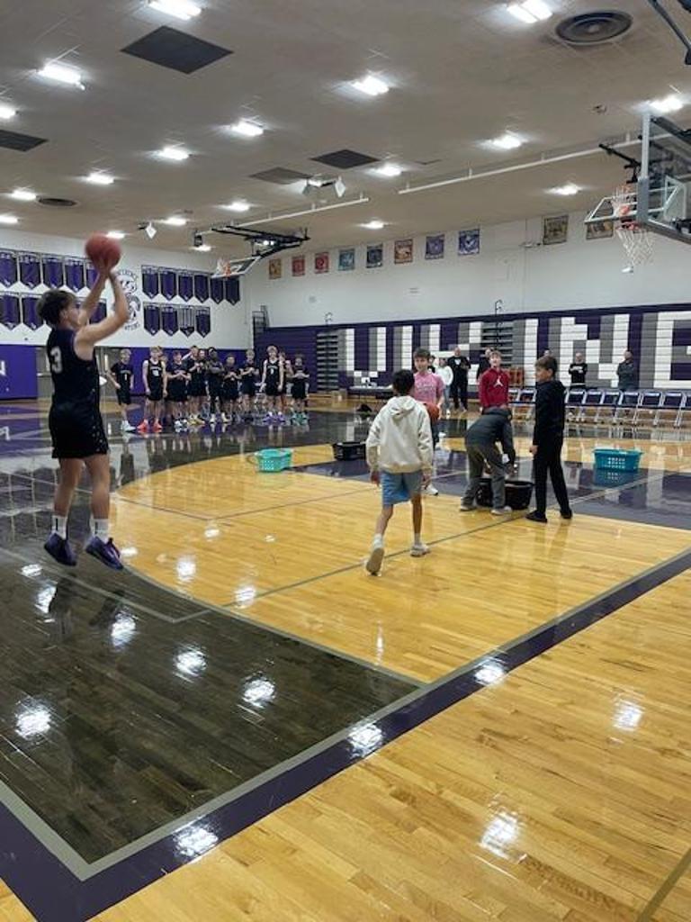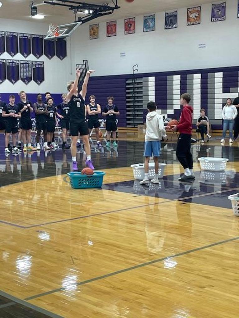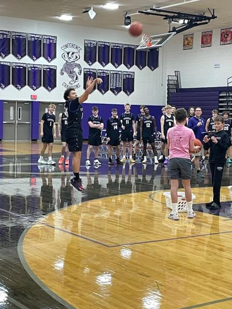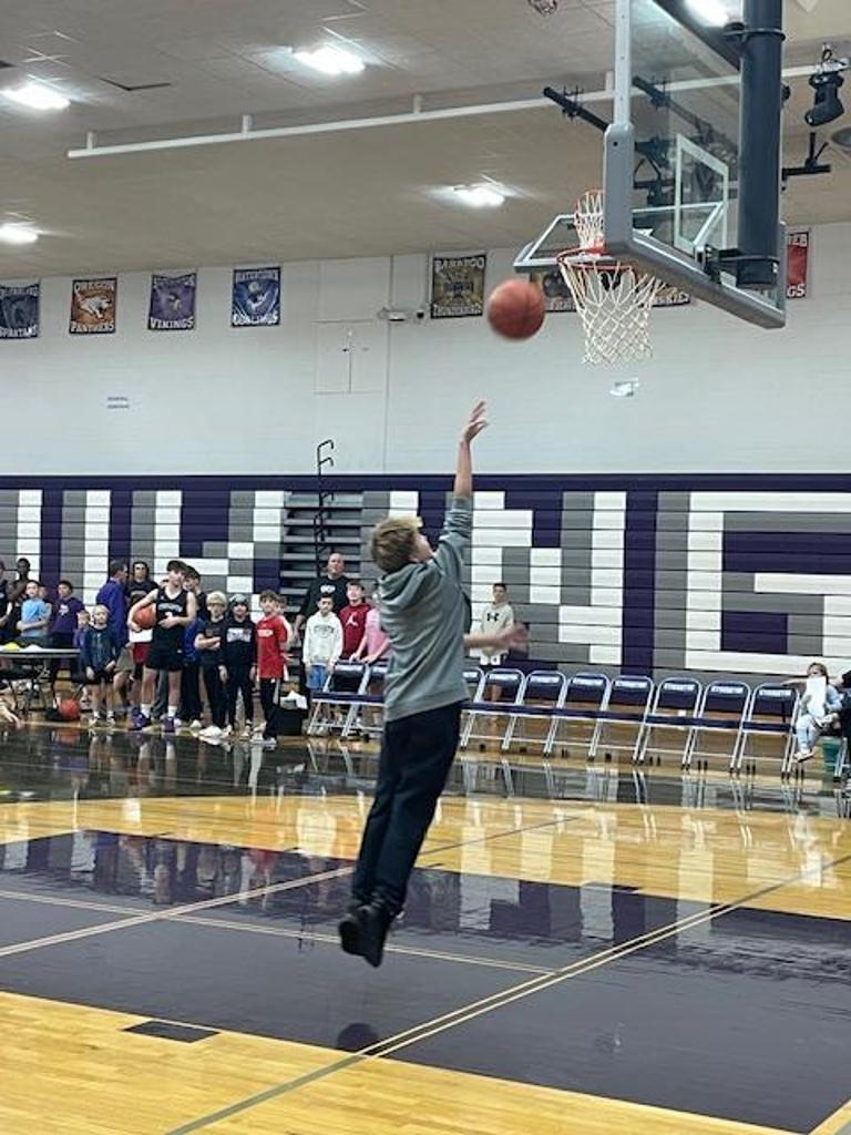 Youth players of all ages mixed with varsity players on a variety of skills and shooting competitions.
